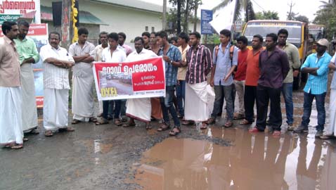 റോഡിലെ ശോച്യാവസ്ഥ പരിഹരിക്കണമെന്നാവശ്യപ്പെട്ട് ഡിവൈഎഫ്ഐ കടുങ്ങല്ലൂര് ഈസ്റ്റ് മേഖല കമ്മിറ്റി ഇന്നു രാവിലെ നടത്തിയ റോഡ് ഉപരോധം ഉദ്ഘാടനം മുന് എംഎല്എ എ.എം.യൂസഫ് സംസാരിക്കുന്നു.