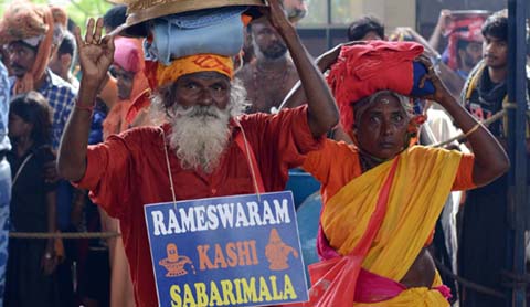 ശബരിമല: ഗംഗ, യമുനാ,കൃഷ്ണ,കാവേരി ഗോദാവരി, പമ്പ, തുടങ്ങിയ പുണ്യ നദികളില് ആറാടിച്ച അയ്യപ്പ വിഗ്രഹവുമായി മുച്ചക്ര ഉന്തുവണ്ടിയില് കിലോമീറ്ററുകള് നഗ്നപാദരായി സഞ്ചരിച്ച് ദമ്പതികള് സന്നിധാനത്തെത്തി. അയ്യപ്പ സേവാസംഘം ബംഗളുരൂ റൂറല് ജില്ലാ യൂണിയന് സെക്രട്ടറി എന്.പി മണിസ്വാമി (65) , ഭാര്യ സരസ്വതി (62) എന്നിവരാണ് കാശി,രാമമേശ്വരം, പാണ്ടി മലയാളം താണ്ടി ശബരീശ സന്നിധിയില് ചൊവ്വാഴ്ച എത്തിയത്. മാന്നാര് കൊരട്ടി അമ്പലത്തില് നിന്നും കഴിഞ്ഞ ഫെബ്രുവരി 22 ന് പന്തളം രാജാവ് ഭദ്രദീപം കൊളുത്തി അമ്പലപ്പുഴ ഗുരുസ്വാമിയുടെ ആശീര്വാദത്തോടെ ആരംഭിച്ച യാത്ര എട്ട് മാസങ്ങള്ക്ക് ശേഷം സന്നിധാനത്തെത്തിയപ്പോള് അയ്യായിരത്തില് പരം കിലോമീറ്ററുകളാണ് ഇരുവരും താണ്ടിയത്. ശ്രീ പത്മനാഭസ്വാമി ക്ഷേത്രം, രാമമേശ്വരം, മധുരൈ മീനാക്ഷി ക്ഷേത്രം, ആന്ധ്രാപ്രദേശിലെ ശ്രീശൈലം, പുട്ടപര്ത്തി, മധ്യപ്രദേശിലെ മേഖാര് മന്ദിരം കാശി തുടങ്ങി ആയിരത്തില്പ്പരം ക്ഷേത്രങ്ങള് സന്ദര്ശിച്ചാണ് ഇരുവരും ശബരിമലയിലെത്തിയത്. ഇംഗ്ലീഷ്, മലയാളം, തെലുങ്ക്, കന്നട തുടങ്ങി വിവിധ ഭാഷകള് അറിയുന്ന സ്വാമി, താണ്ടിയ വഴികളില് അയ്യപ്പധര്മ്മ പ്രചാരണവും നടത്തി. റാന്നി ഇടക്കുളം സ്വദേശിയായ മണിസ്വാമി 47 വര്ഷമായി ബാംഗ്ലൂരില് സ്ഥിരതാമസമാണ്. ശബരീശന്റെ അനുഗ്രഹവും വാങ്ങി മലയിറങ്ങുമ്പോള് ദേശങ്ങള് താണ്ടിയ അയ്യപ്പവിഗ്രഹം മാന്നാര് ക്ഷേത്രത്തില് കാശി മാതൃകയില് ഒരു ഗോപുരം പണിത് അവിടെ സ്ഥാപിക്കണമെന്നാണ് മണിസ്വാമിയുടെ ആഗ്രഹം.