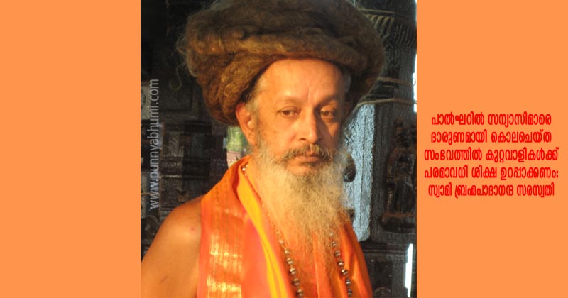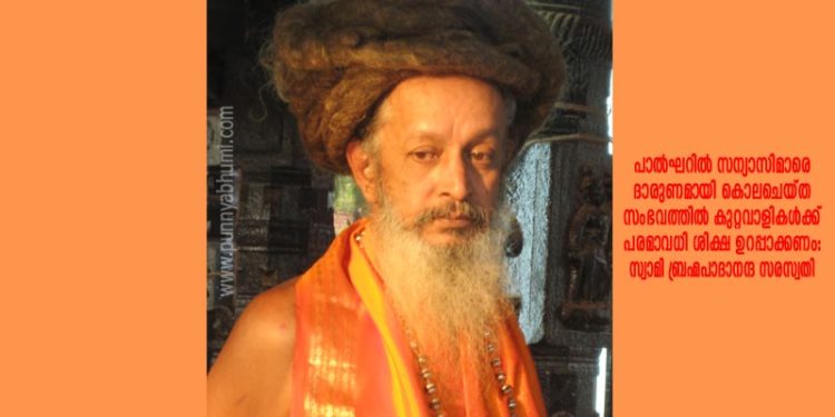 തിരുവനന്തപുരം: മഹാരാഷ്ട്രയിലെ പാല്ഘറില് സന്യാസിമാരെയും അവരുടെ ഡ്രൈവറെയും മൃഗീയമായി മര്ദ്ദിച്ചുകൊലപ്പെടുത്തിയ അത്യന്തം ദാരുണമായ സംഭവത്തില് അഗാധമായ ദുഃഖം രേഖപ്പെടുത്തുന്നതായി ചേങ്കോട്ടുകോണം ശ്രീരാമദാസമിഷന് അദ്ധ്യക്ഷന് സ്വാമി ബ്രഹ്മപാദാനന്ദ സരസ്വതി പറഞ്ഞു. സംഭവം അങ്ങേയറ്റം അപലപനീയവും പ്രതിഷേധാര്ഹവുമാണ്. കൊല്ലപ്പെട്ട സന്യാസിമാര്ക്ക് ഹൃദയപൂര്വം ശ്രദ്ധാഞ്ജലി അര്പ്പിക്കുന്നതായി അനുശോചന സന്ദേശത്തില് അദ്ദേഹം അറിയിച്ചു. ഇതിന് ഉത്തരവാദിയായവരെ എത്രയും വേഗം നിയമത്തിനുമുന്നിലെത്തിച്ച് പരമാവധി ശിക്ഷ ഉറപ്പാക്കണമെന്നും അധികാരികളോട് അദ്ദേഹം ആവശ്യപ്പെട്ടു.