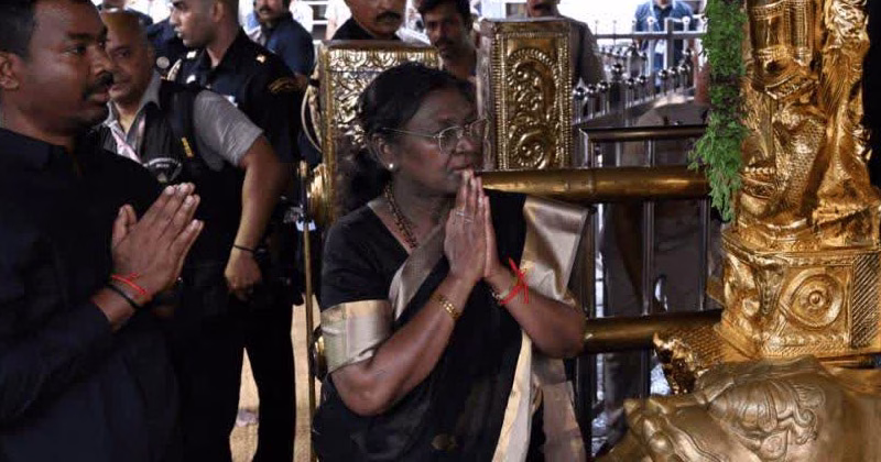 ഇരുമുടികെട്ട് നടയില് സമര്പ്പിച്ച രാഷ്ട്രപതി ഏറെ നേരം തൊഴുകൈയോടെ അയ്യനെ കണ്കുളിര്ക്കെ കണ്ടു. മേല്ശാന്തിയില് നിന്നും പ്രസാദവും സ്വീകരിച്ചാണ് രാഷ്ട്രപതി ദര്ശനം പൂര്ത്തിയാക്കിയത്.