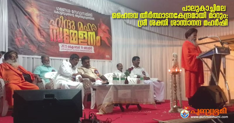 കൊട്ടിയൂര്: അതിവിശിഷ്ടമായ ദേവതാ സങ്കല്പങ്ങളും സ്വാമി സത്യാനന്ദ ഗുരുപീഠവും സ്ഥിതിചെയ്യുന്ന കൊട്ടിയൂരിലെ പാലുകാച്ചിമല അനതിവിദൂര ഭാവിയില് തീര്ത്ഥാടന കേന്ദ്രമായി പരിണമിക്കുമെന്ന് തിരുവനന്തപുരം ചേങ്കോട്ടുകോണം ശ്രീരാമദാസമിഷന് അധ്യക്ഷന് ശ്രീശക്തി ശാന്താനന്ദ മഹര്ഷി പറഞ്ഞു. കൊട്ടിയൂര് ഗണേശ സേവാസമിതി സംഘടിപ്പിച്ച ഗണേശോത്സവത്തിന്റെ ഭാഗമായ ഹിന്ദു മഹാസമ്മേളനത്തില് മുഖ്യപ്രഭാഷണം നിര്വഹിച്ചു സംസാരിക്കുകയായിരുന്നു സ്വാമിജി.