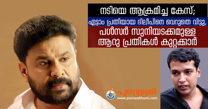 കൊച്ചി: നടിയെ ആക്രമിച്ച കേസില് എട്ടാം പ്രതിയായ നടന് ദിലീപിനെ വെറുതെ വിട്ടു. കേസിലെ ഒന്നാം പ്രതിയായ പള്സര് സുനിയടക്കമുള്ളവര് കുറ്റക്കാരെന്ന് കോടതി കണ്ടെത്തി. എറണാകുളം പ്രിന്സിപ്പല് സെഷന്സ് കോടതിയാണ് ദിലീപിനെ വെറുതെവിട്ടുകൊണ്ടുള്ള വിധി പ്രസ്താവിച്ചത്. കൃത്യത്തില് നേരിട്ട് പങ്കെടുത്ത പള്സര് സുനിയടക്കം ആറു പ്രതികള്ക്കെതിരെ കൂട്ട ബലാത്സംഗം, തട്ടിക്കൊണ്ടുപോകല്, ഗൂഡാലോചന എന്നീ കുറ്റങ്ങളാണ് പ്രധാനമായും ചുമത്തിയിരിക്കുന്നത്. ഇവയെല്ലാം തെളിഞ്ഞു. ആറു പ്രതികളുടെയും ശിക്ഷാ വിധിയില് ഡിസംബര് 12ന് വാദം നടക്കും. കൃത്യത്തില് നേരിട്ട് പങ്കെടുത്തില്ലെങ്കിലും സംഭവത്തിന്റെ മുഖ്യ ആസൂത്രകന് എന്ന് പ്രോസിക്യൂഷന് ആരോപിക്കുന്ന എട്ടാം പ്രതിയായ ദിലീപിനെതിരെയും ബലാത്സംഗ കുറ്റം ചുമത്തിയിരുന്നു. എന്നാല്, ദിലീപിനെതിരെ ക്രിമിനല് ഗൂഢാലോചന തെളിയിക്കാന് പ്രോസിക്യൂഷന് സാധിച്ചില്ല. ഗൂഢാലോചനയിലടക്കം തെളിവില്ലെന്ന് ചൂണ്ടികാട്ടിയാണ് കേസില് പ്രതിയായ ദിലീപിനെ കോടതി കുറ്റവിമുക്തനാക്കിയത്. ഐടി നിയമ പ്രകാരം പള്സര് സുനി കുറ്റക്കാരനാണെന്നും കോടതി കണ്ടെത്തി.