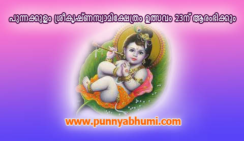 Read moreDetailsപുന്നക്കുളം ശ്രീകൃഷ്ണസ്വാമി ക്ഷേത്ര ഉത്സവം 23 മുതല് മെയ് 2 വരെ നടക്കും. 23ന് രാവിലെ 9ന് കൊടിയേറ്റ്, 10ന് ഓണവില്ല് സമര്പ്പണം, രാത്രി 7.30ന് ഭക്തിഗാനമേള....